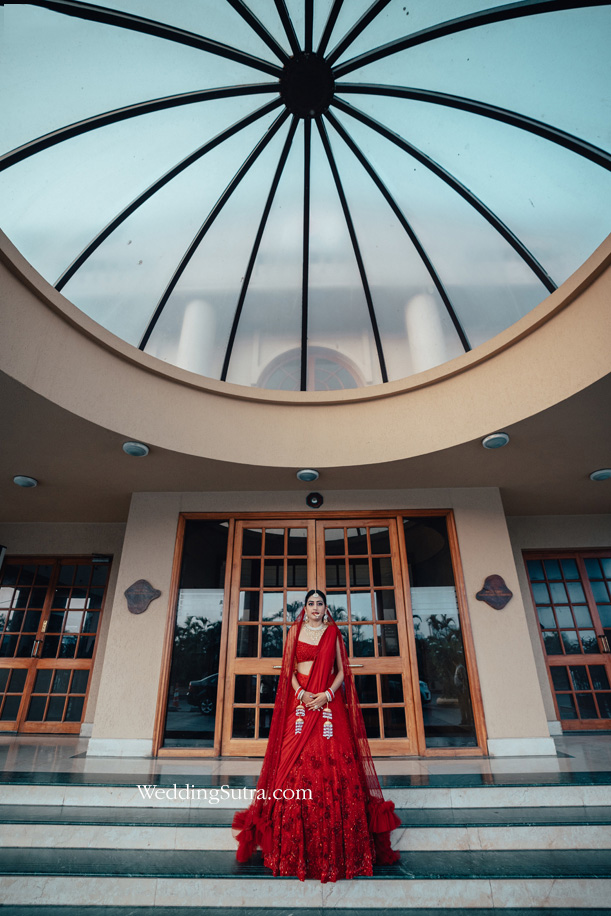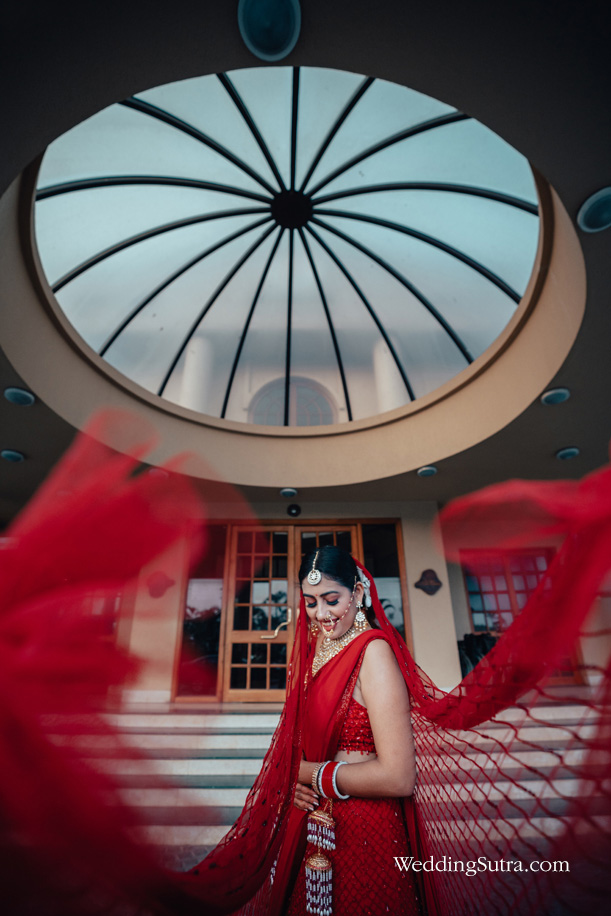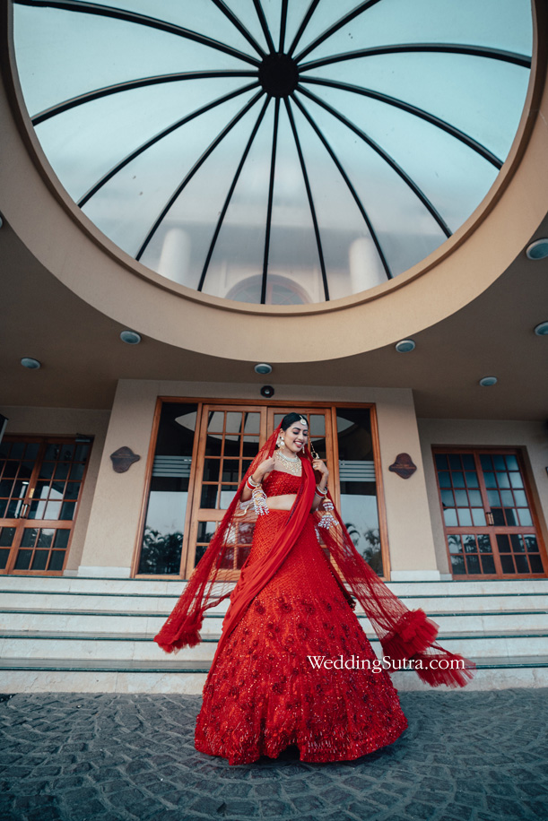 To enhance the beauty of the ensemble, Richa Thakkar gave Twisha a shimmering smoky eye and bold lips look. As Twisha twirled in her bridal look, Namit and Vipul of Knotty Affair captured her in all her glory.