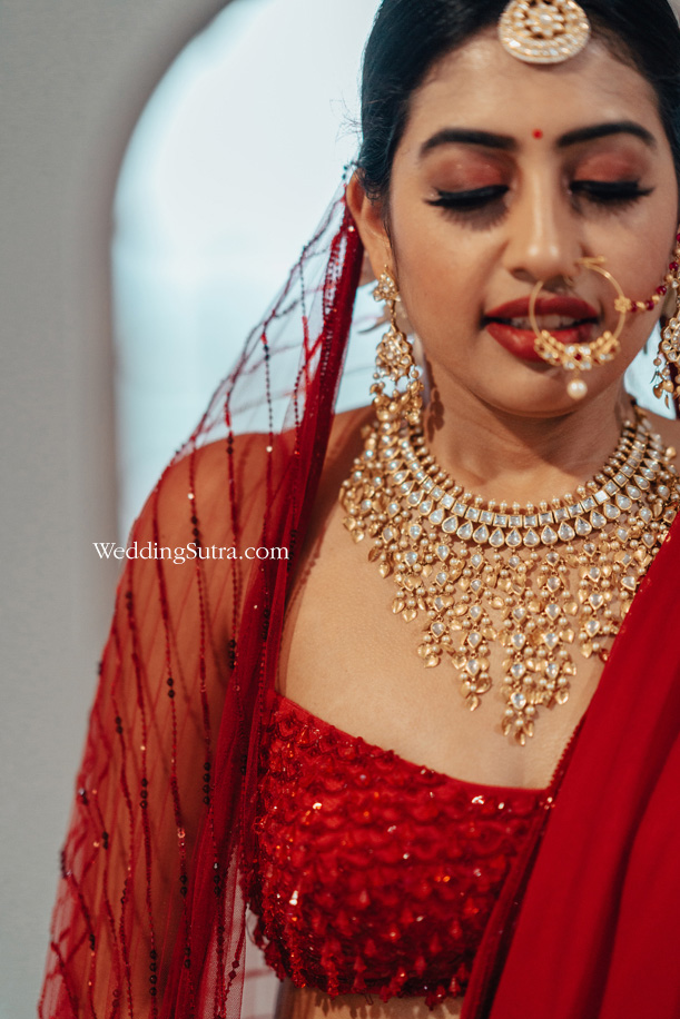The selected ornaments perfectly complemented the flaming red lehenga by Avvantika S Parwani that stylist Shikha Dhandhia picked for Twisha. Armed with her arsenal of quality products from the iconic Lakmé Absolute range of cosmetics, makeup artist Richa Thakkar gave her a glowing and gorgeous visage. The memorable moments of the session were captured by the team at Knotty Affair by Namit & Vipul.