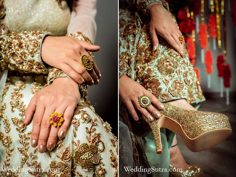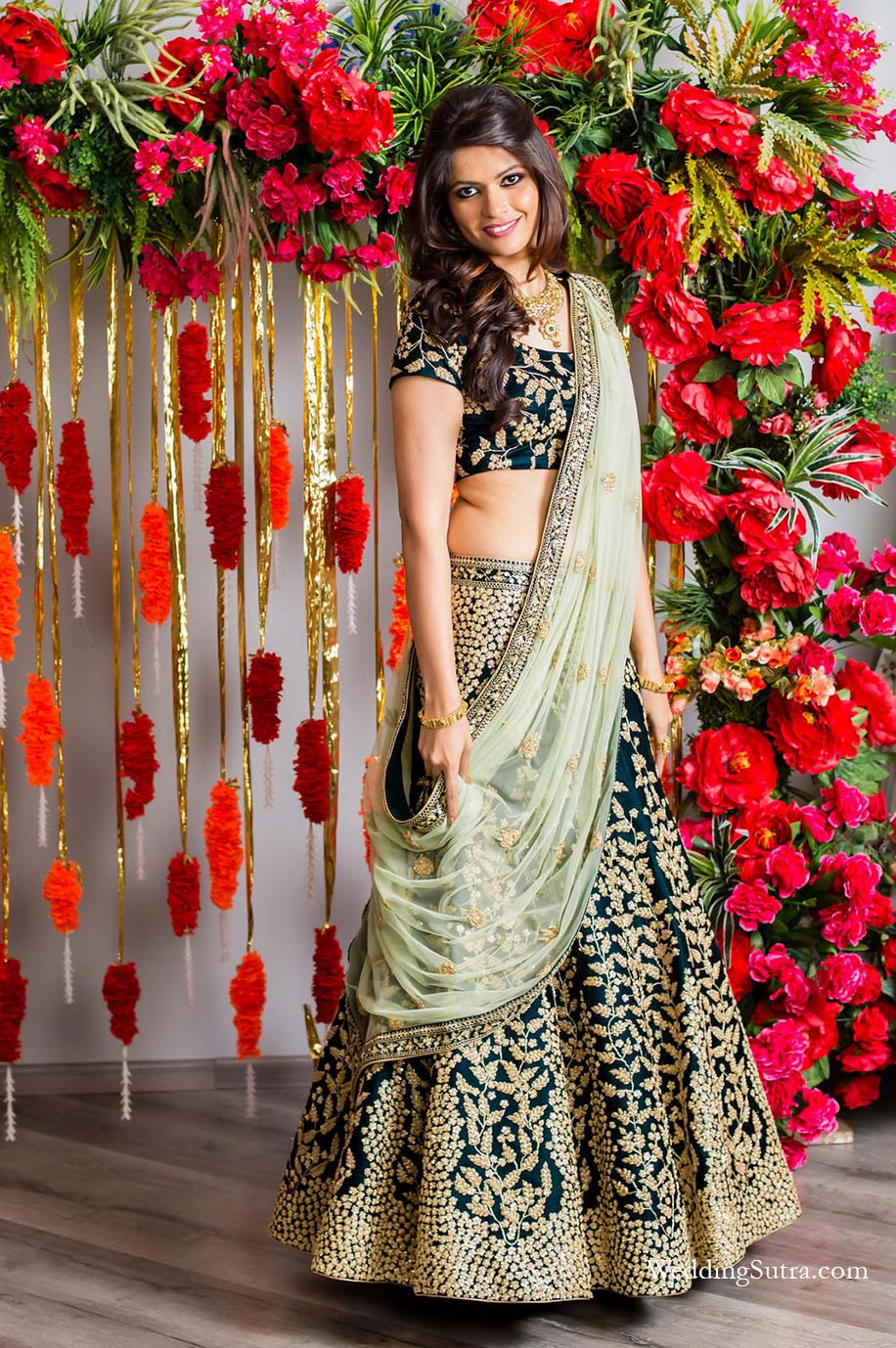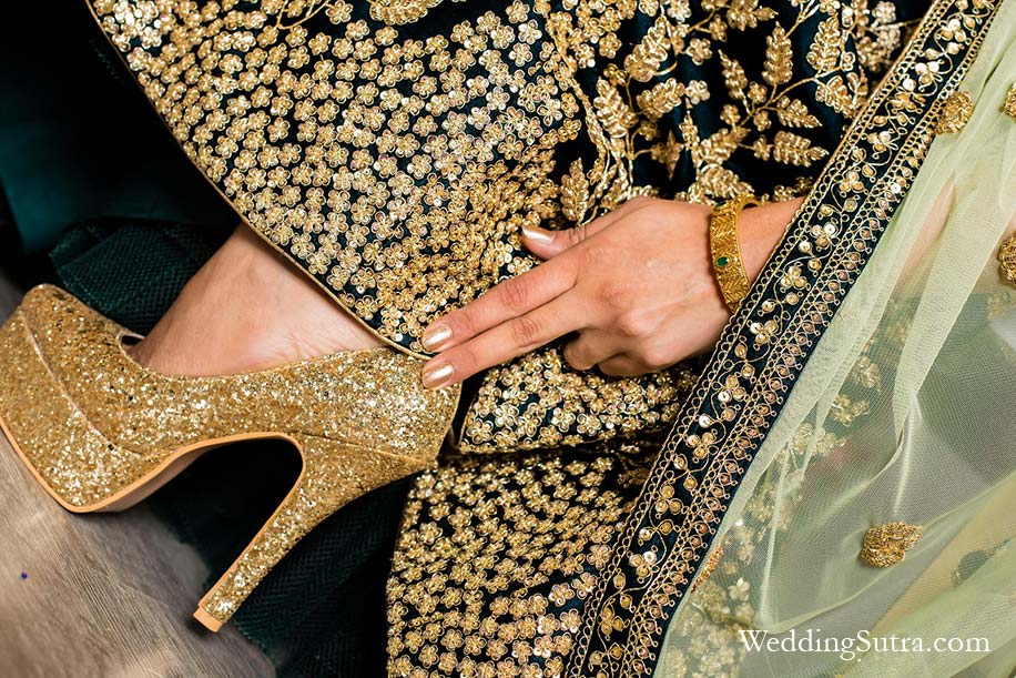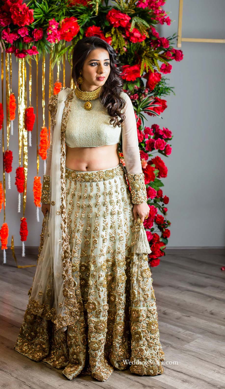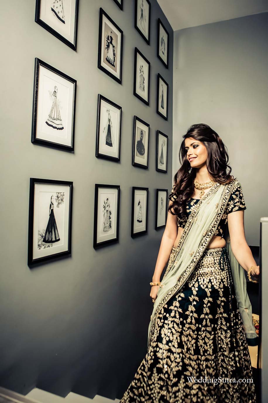 I was a nervous wreck on the day of the shoot but Team WeddingSutra just put me at ease immediately as I entered the gorgeous studio. As I looked to choose a bridal lehenga, a pastel green stole my attention. I knew I didn’t need to look any further – the colour, the embellishment, the detail, it was nothing short of perfection. I put it on and it fit like it had been custom made for me. I felt like a Princess in a fairy tale!