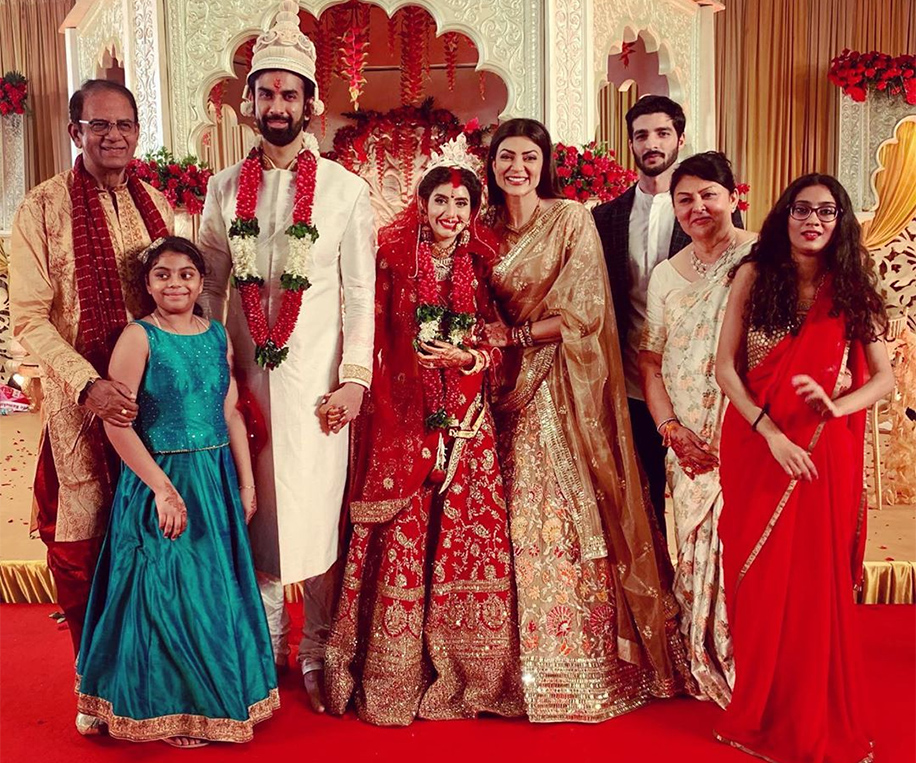 It was finally time for Charu and Rajeev’s traditional Bengali wedding. The decor for the indoor ceremony was understated and classy with a white mandap and red floral decorations. The bride wore a red lehenga, and the groom donned an ivory outfit. The happy couple was showered with love and blessings by their loved ones, and Sushmita Sen even shared some goofy videos of herself and family members welcoming her sister-in-law into the family with love.