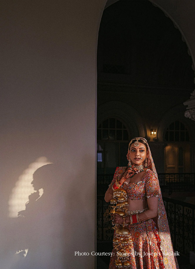 Jewellery: Manish Malhotra Jewellery (Engagement), Jadau Jewellery by Faguni Mehta (Satsang), Anita Dongre Pink City (Mehndi), Mrinalini Chandra (Wedding), Sunita Shekhawat (Haldi & Wedding), The Rose (Reception)
