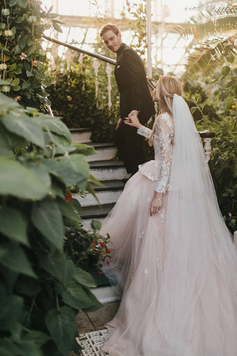 Photos from the ceremony show the couple smiling at each other and walking down the aisle as their guests blew bubbles instead of throwing confetti. They were also captured posing on a beautiful staircase that was laden with foliage. Marzia also posted her photos online and shared, “At midnight, we ended the night with a sparklers send-off. Everything about the evening was so magical.”