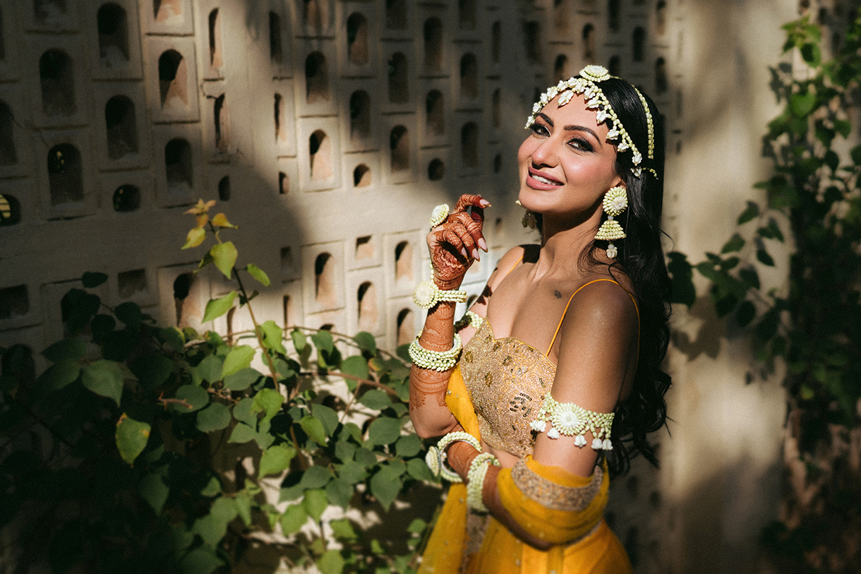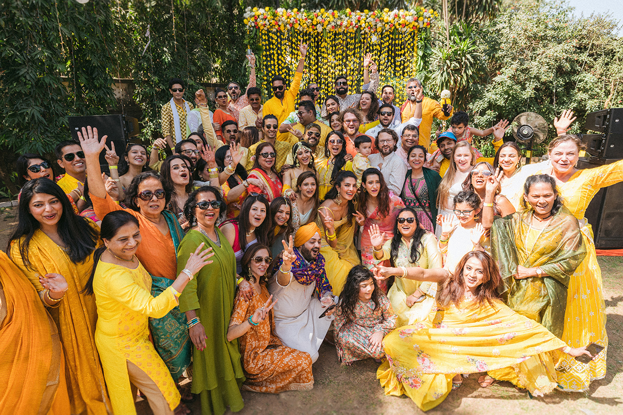 After some pre-wedding festivities at their residence, the Haldi Brunch at the Army Club kicked off the celebrations. Planned by WeddingSutra Favorites Believe Weddings and Mpire Events, the vibrant, sun-kissed soiree saw traditional marigold decor that lit up the lush lawns, and the bride looked radiant with her floral adornments as she entered under a phoolon-ka-chadar. Photos and videos from the lively event show the happy family dancing and having a blast.