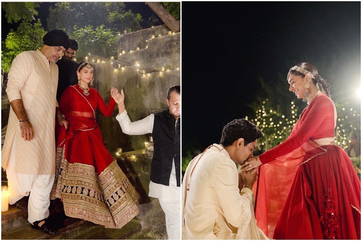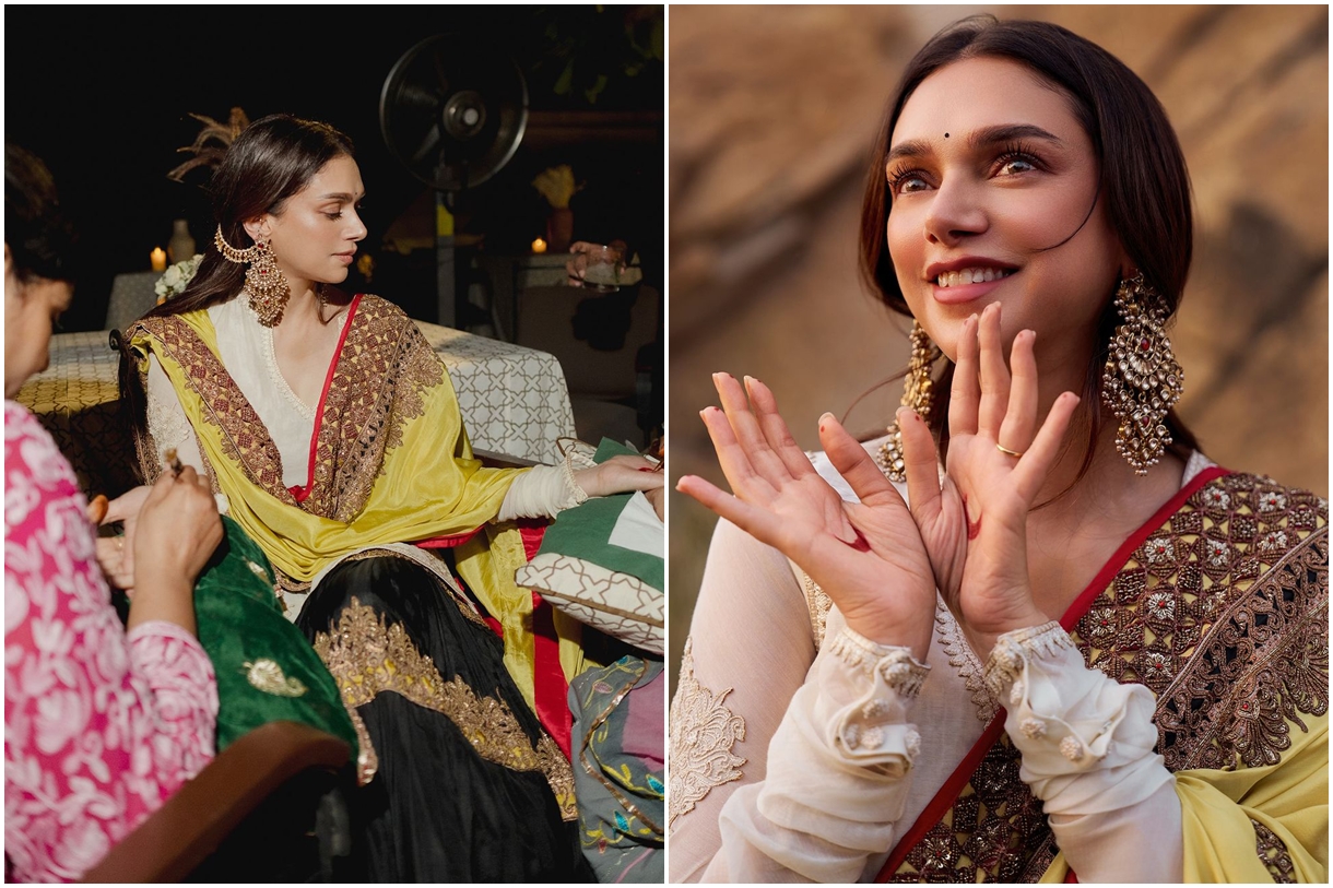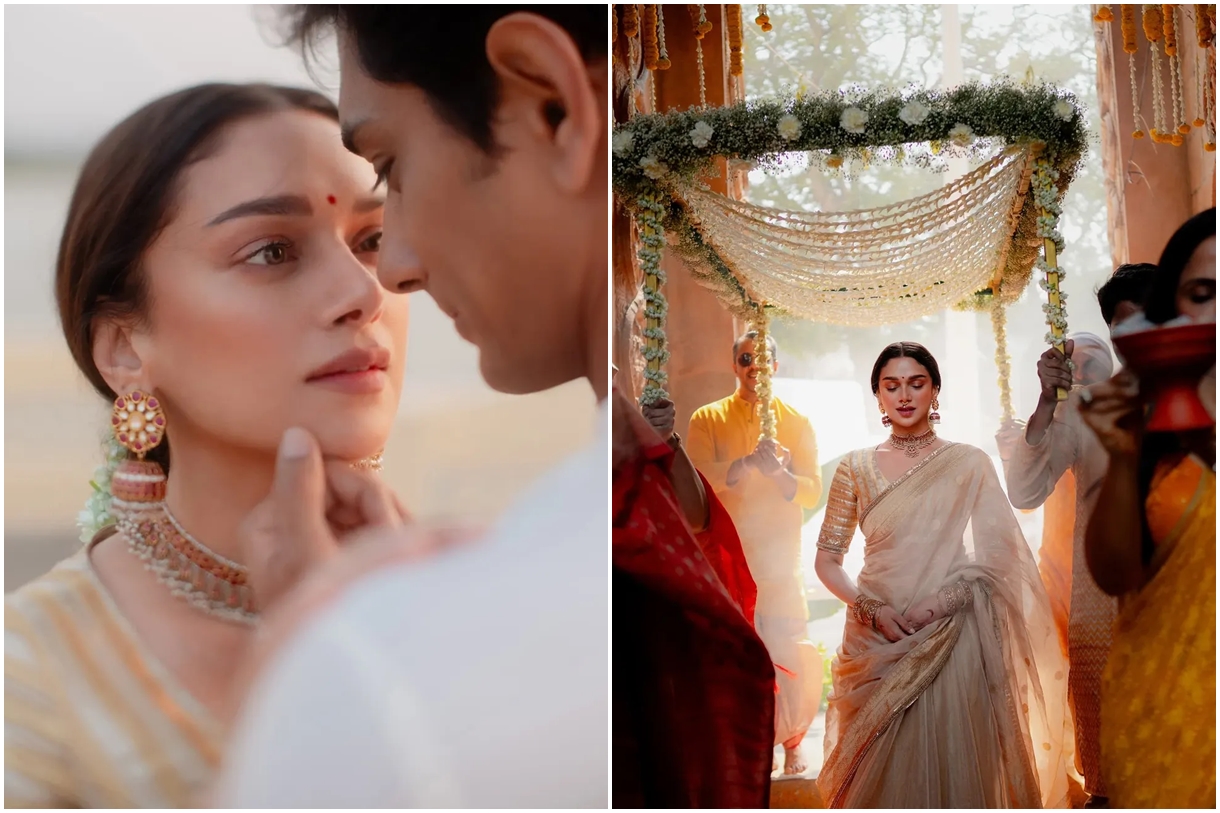 Aditi Rao is well known for her whimsical fashion choices that take inspiration from classic styles. And, as she tied the knot with her beau, actor Siddharth, it was no surprise that she chose a melange of simple yet ethereal outfits that fit seamlessly with her personal style.