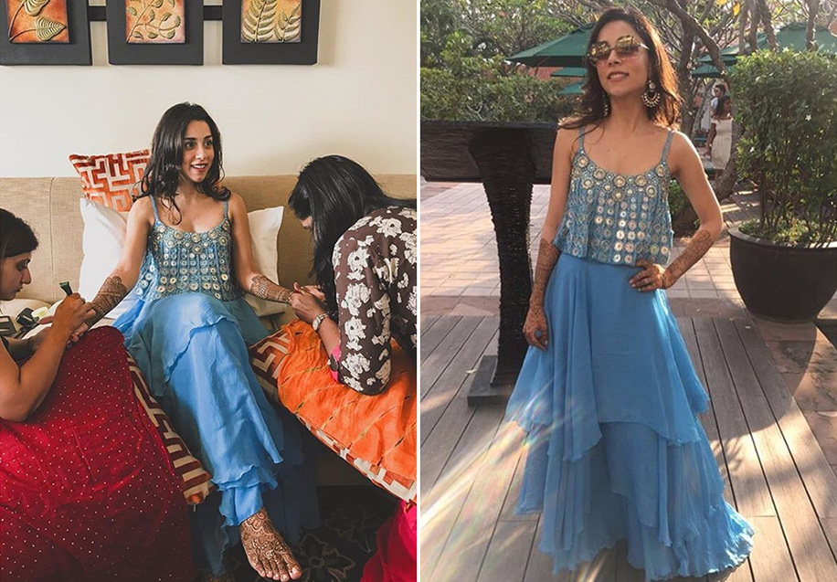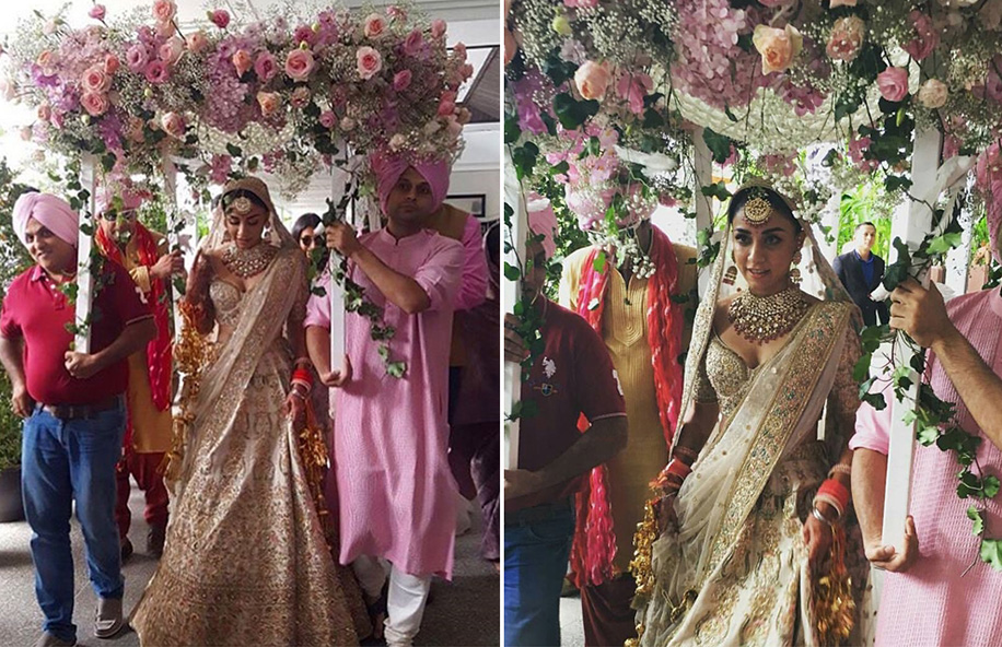 Brides Outfit: Ritika Mirchandani (Mehndi) and Sabhyasachi (Wedding)