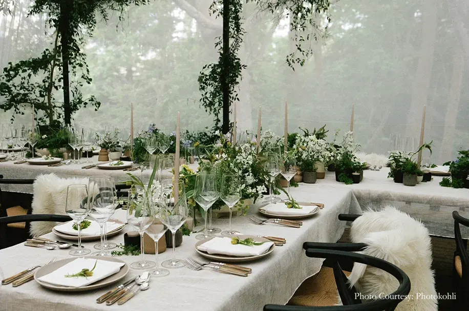 To begin this new, exciting phase in their lives they chose to execute a close-knit but stunning wedding attended by less than 20 loved ones. Decorated with suspended blooms and pillar candles that lit up the pristine white walls of the home with a golden glow, the wedding was aesthetically pleasing in a minimalistic and luxurious way. As per sources, hundreds of white florals were used in the decor which meshed perfectly well with the singer’s taste for simplicity. The guests’ dinner tables also followed the same theme as they were adorned with white flowers and green foliage interspersed with tall candlesticks.