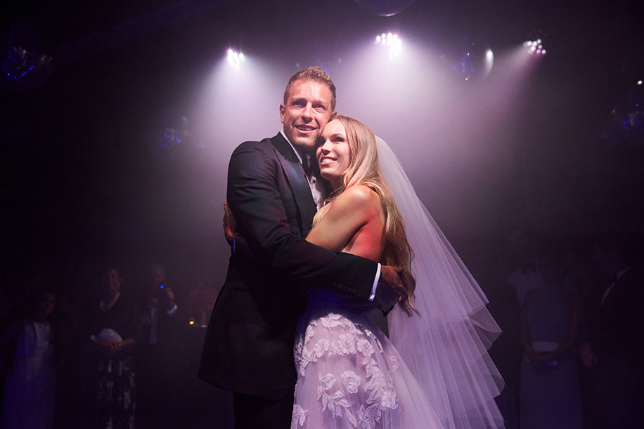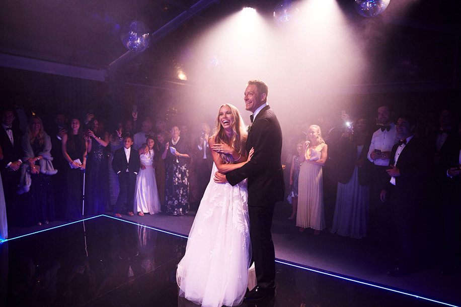 After the wedding, the newlyweds made their way to the reception where they shared their first dance to Lukas Graham’s ‘Love Someone’ which he performed live. After the cake cutting and dinner, the bride changed into a sparkling Stella McCartney sequin dress with spaghetti straps – and custom Adidas sneakers to dance the night away!