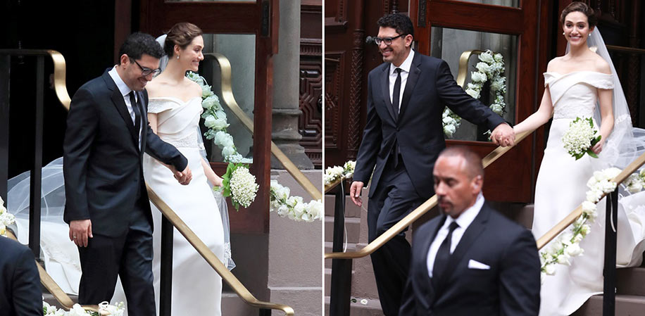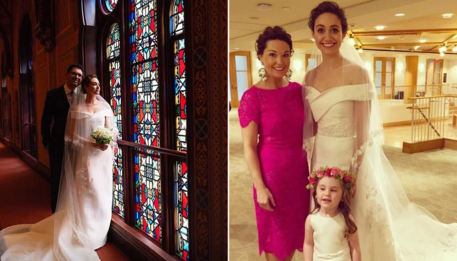 Popular actress Emmy Rossum married director Sam Esmail with stylish fervor in a gorgeous Caroline Herrera gown in New York.