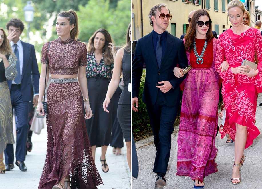 Jessica and Gian’s wedding was a close-knit affair with close friends and celebrity co-stars such as Anne Hathaway, Emily Blunt, Edgar Ramirez, celebrity stylist Valentina Micchetti, Bianca Brandolini d’Adda, Valentina Scambia and Roberta Armani attending the event. For her church wedding at the Villa Tiepolo Passi in Carbonera, the blushing bride looked resplendent in a gorgeous white lace strapless gown by Riccardo Tisci which came with a fitted bodice. She kept her accessories to the minimum with just a pair of gold earrings and happy smile.