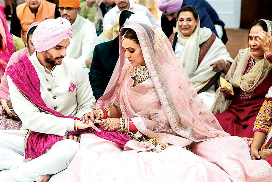 Actress Neha Dhupia wed Angad Singh Bedi in a hush-hush and intimate Sikh wedding in New Delhi and charmed fans with her bridal looks.