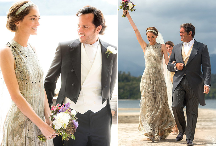 Fashion world darling Sofia Sanchez Barrenechea married Alexandre de Betak, french fashion and furniture designer in a breathtaking ceremony on a deserted beach in the wilds of Patagonia, the location of family holidays for the Buenos Aires-born bride, who grew up visiting the tiny corner of Argentine paradise every summer. The bride was dressed by Valentino, in a tailor-made beaded and sequined gown that took an incredible 1,800 hours to make.