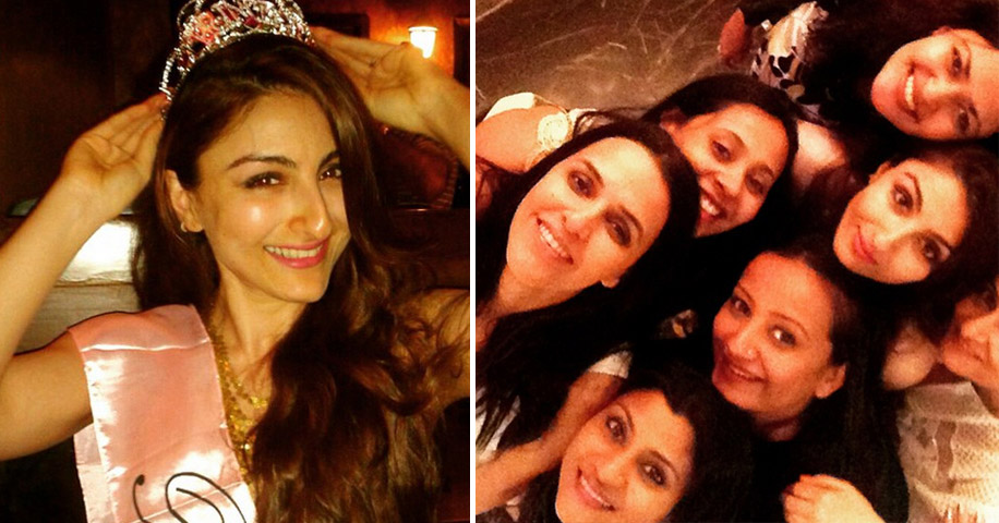 Actress, princess of the royal family of Pataudi and the baby sister of Saif Ali Khan, Soha Ali Khan tied the knot with long time beau actor Kunal Khemu in an intimate ceremony at Khans’ Mumbai residence. Soha’s close friends threw a grand bachelorette party for her on the evening of 22nd January presenting her with a jewel-studded tiara. The bride-to-be looked resplendent in a gold bronze gown with a sequined neckline.