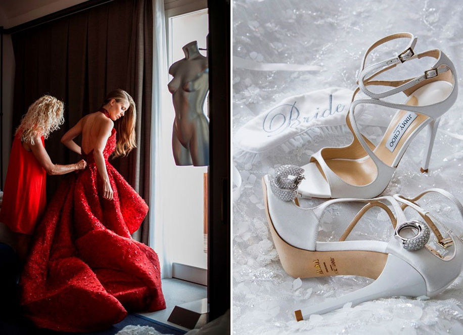 Victoria wore a 46kg custom-made Swarovski crystal studded gown by Micael Cinco at her wedding in Italy.