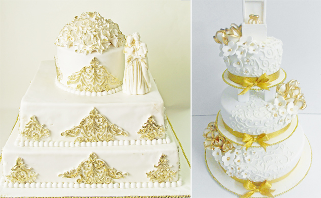 Many clients don’t want simple, tiered wedding cakes. They want something that is remarkably extravagant and truly different. They want the cake to be both impressive and delicious– something they can relish and the guests can rave about… get the drift? And this is exactly what we strive to provide them with. The use of different techniques ensures we have plenty of design options for the finishing of the cake. Currently I’ve been seeing a demand for a lot of cakes in a beautiful combination of White with Gold (flowers, stenciling or molding).