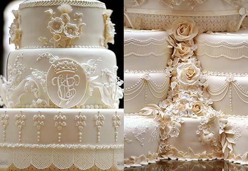 Prestigious British baker Fiona Cairns designs an eight-tiered fruitcake for Prince William and Duchess Kate’s Wedding Reception.