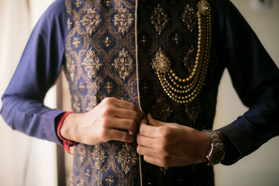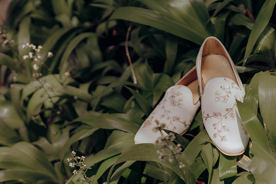 Don’t forget to amp up your footwear! While several designers carry a wide range of ornate Indian men’s footwear options, some designers also customize them to match the fabric and embroidery of your outfit.