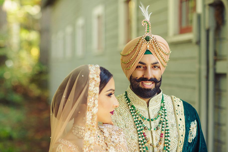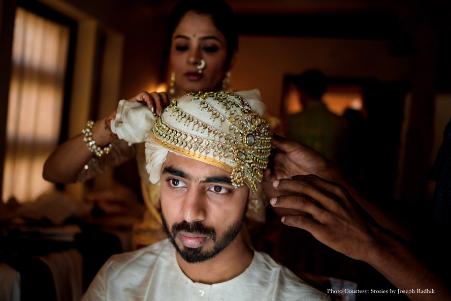 Wearing a turban adds a majestic aura to any traditional groom’s look. A striking turban ornament, especially one with single or multiple plumes, completes the regal look.
