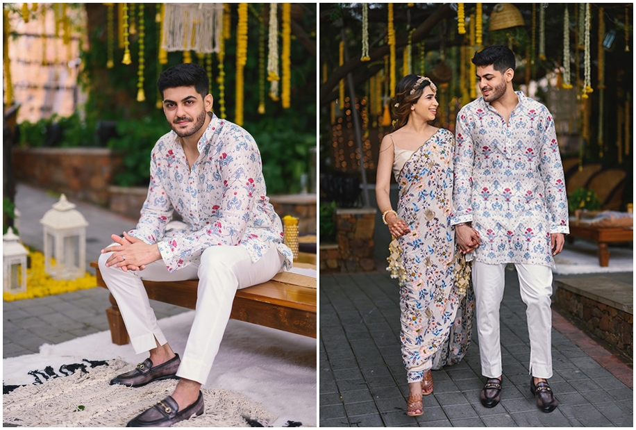 17. While the monochromatic look is a safe bet, a pop of brown adds a dash of masculinity just like groom Vishal Hiranandani did for his wedding outfit.