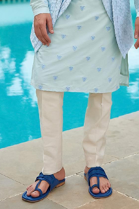 3. Entrepreneur Siddharth Jain shows us just how comfy and yet stylish a pair of kolhapuris can be by rocking these dark blue kolhapuris to accentuate his outfit.