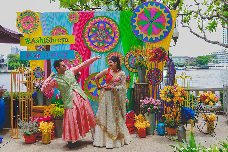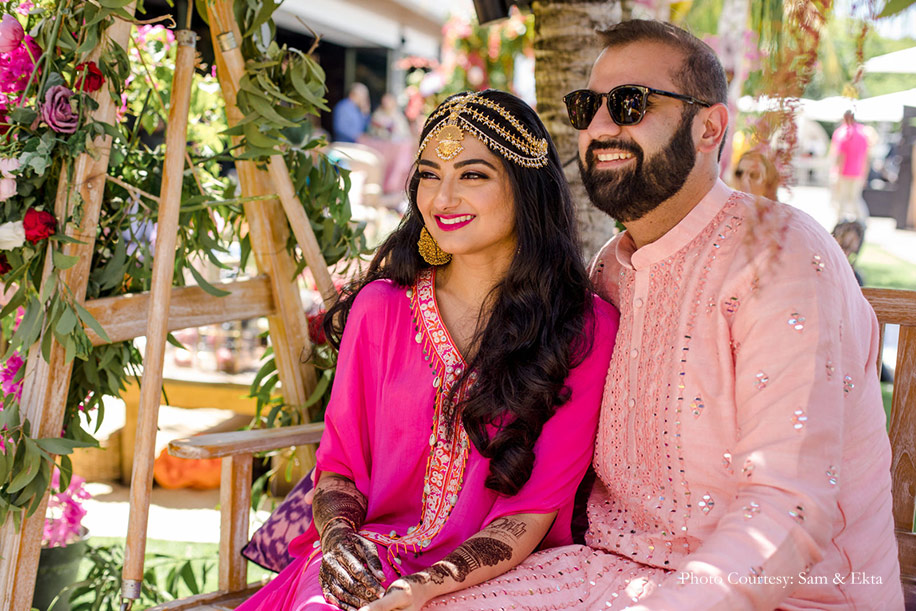 15. Runit chose the classic simplicity of a subtle rose-colored kurta with delicate mirror-work for his beach mehndi.
