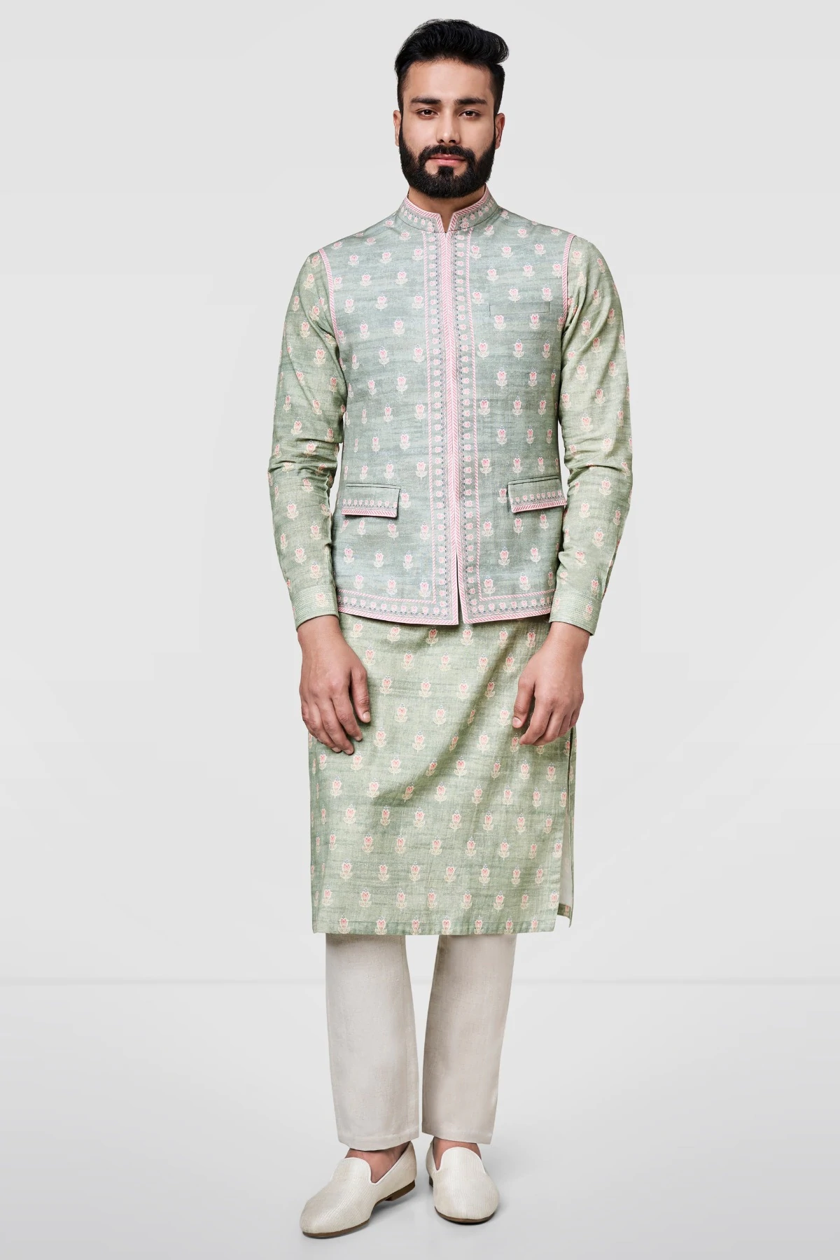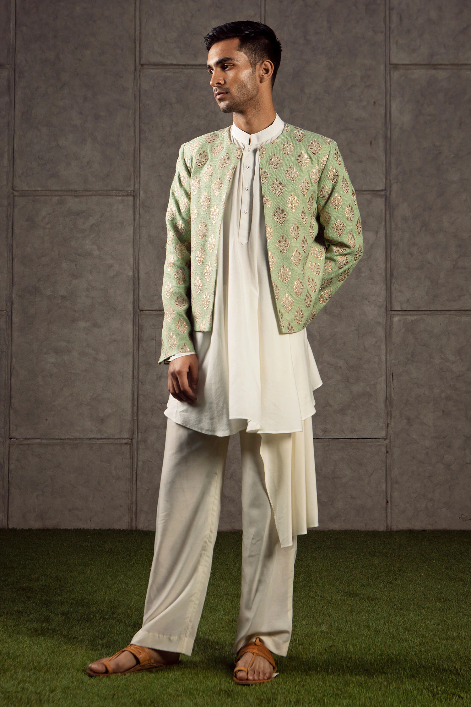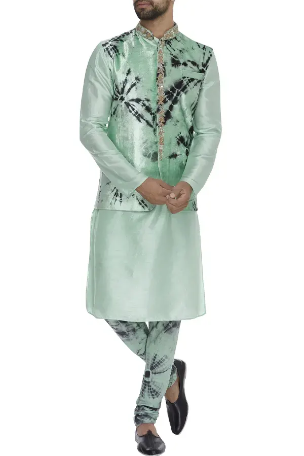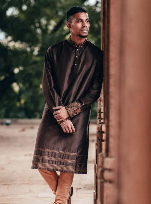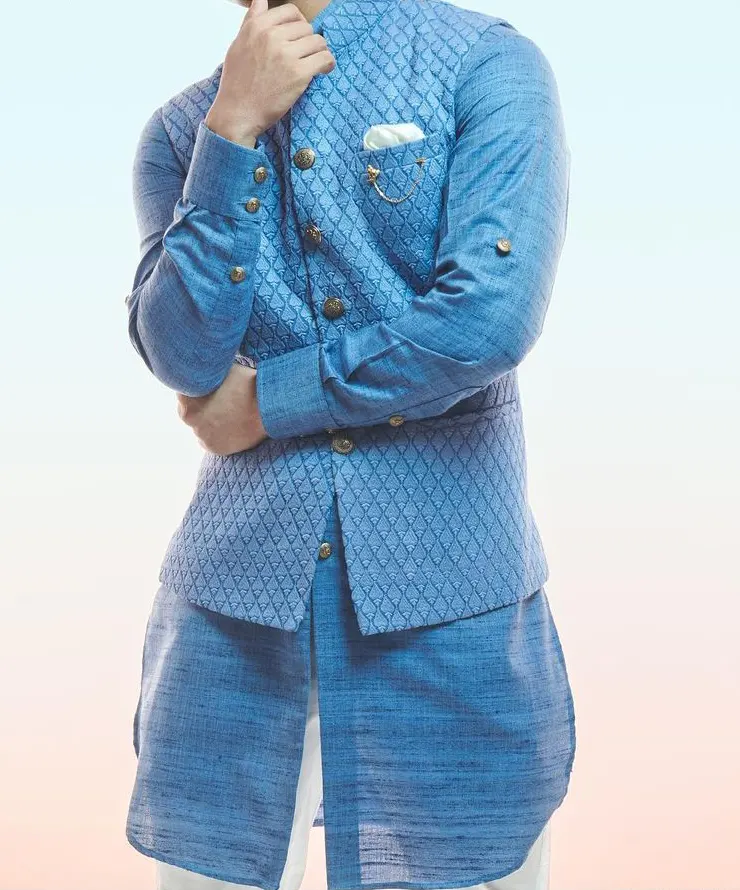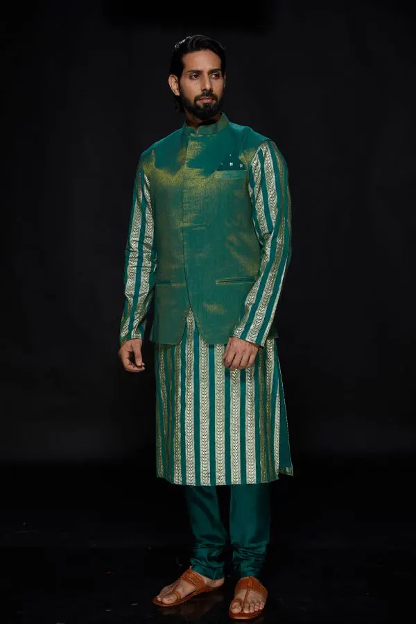 Payal Keyal’s designs are known for blending deep-rooted Indian motifs with contemporary aesthetics. The subdued hues enlivened by the quaint intricacies of design are sure to make the bride or groom’s brother stand out with graceful subtlety.