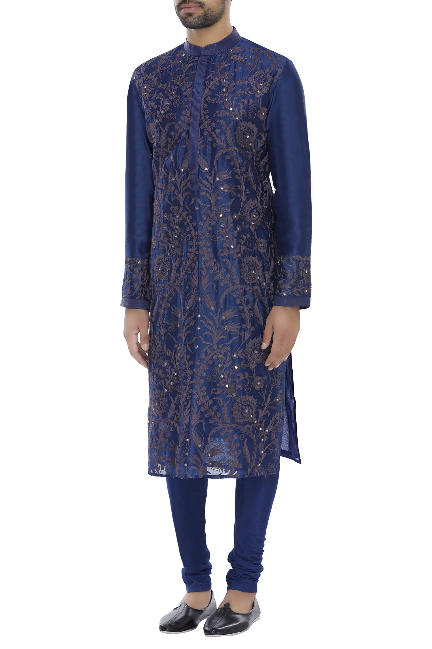 Inspired by the clean lines and power aesthetics of Military uniforms, these unusual styles in rich navy blue by Shantanu & Nikhil are sure to make heads turn.