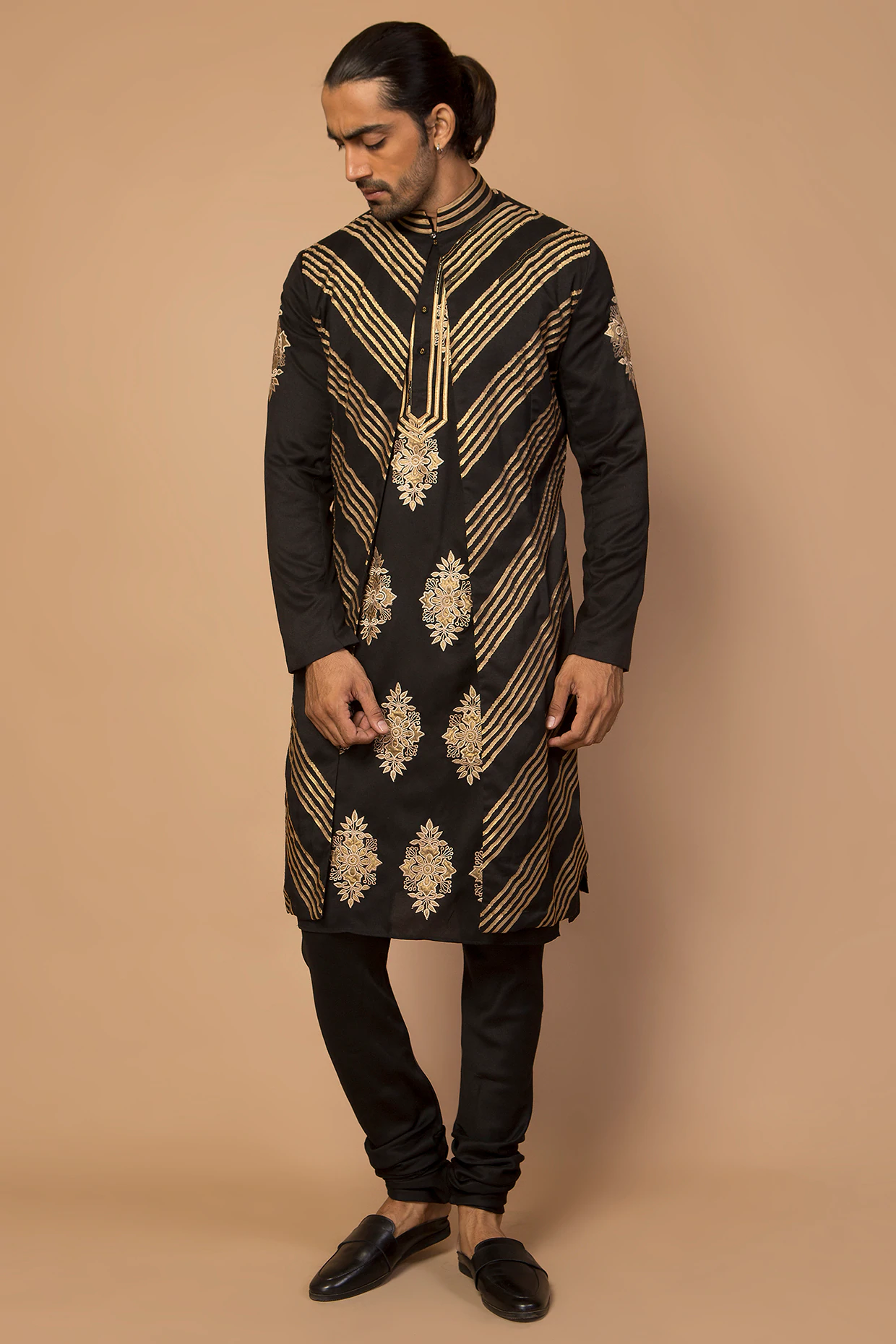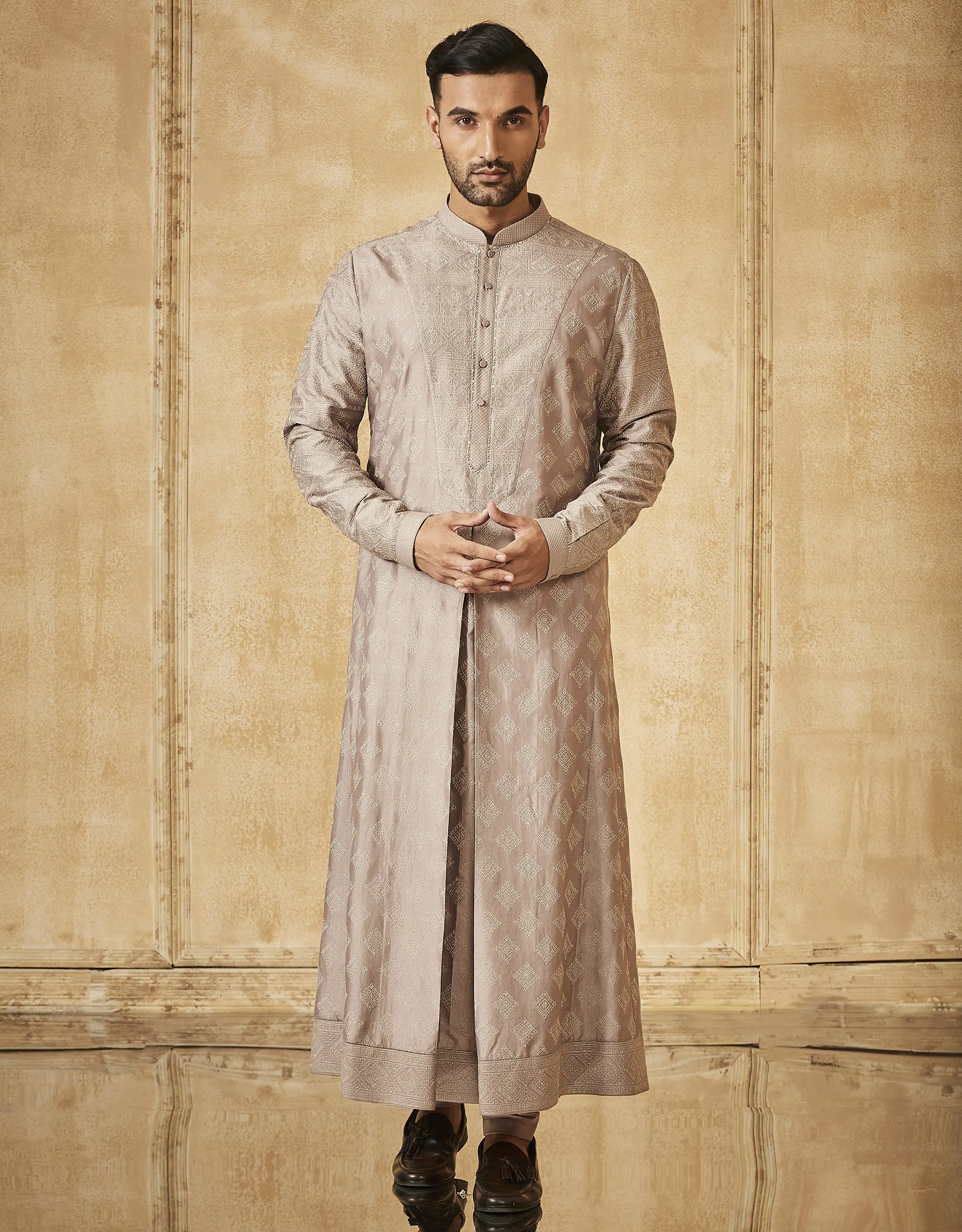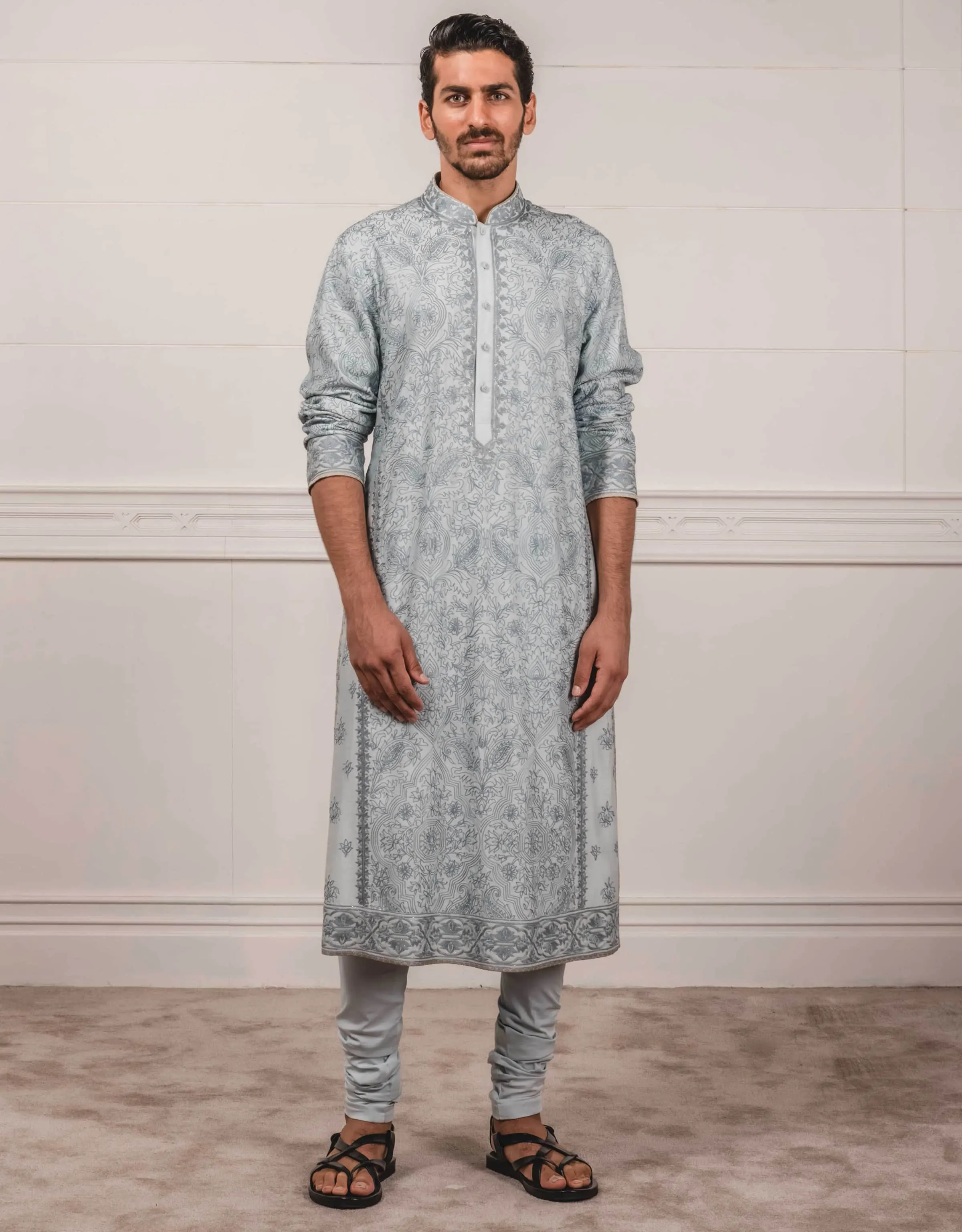 Embrace the tonal elegance of these simple yet stunning embroidered kurta sets by Tarun Tahiliani.
