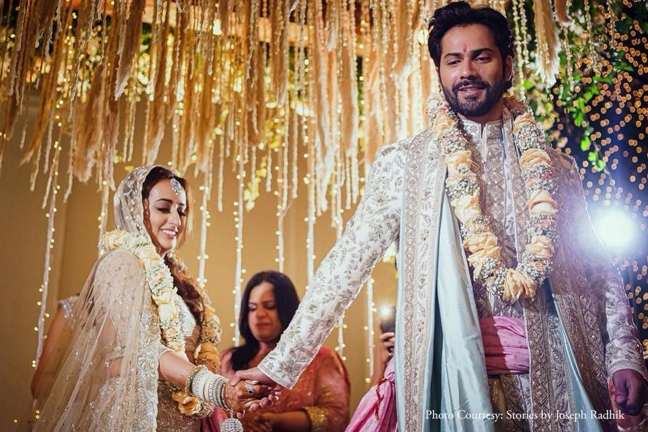 From metallic jackets to classic kurtas in floral motifs, these celebrity grooms including Varun Dhawan and Vicky Kaushal weren’t far behind their brides when it came to style!