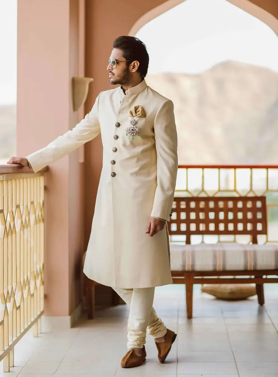 When it comes to fashion, nothing can beat the classics. This holds equally true for the discerning Indian groom who wants to make a subtle statement of his own without stealing his bride’s thunder even as the nuptials unfold. Be it a conventional sherwani you’ve got your eyes on or a contemporary jacket set accentuated with subtle gold or silver zari, a neutral-colored outfit is fuss-free and better yet, can also be repurposed for other occasions!