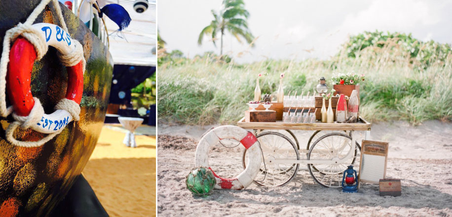 Ditch that monotonous covered table under a sun umbrella for your beach bar. Instead, ask your wedding planner to get their hands on a vintage chest of drawers and set up your bar on it. The added advantage is that you can put your odds and ends such as extra napkins and stirrers in it.