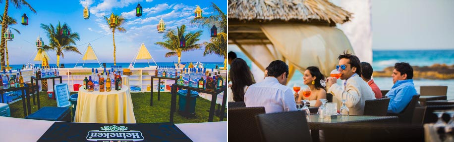 A ‘dhaba-style’ drinks counter is a great idea for beach weddings that have Indian themes. A ‘thela’ with brightly coloured accents such as drapes and floral garlands will add traditional pomp and fizz to the venue. Opt for innovative drinks such as Tamarind Vodka and Masala Martini from this desi-style bar.