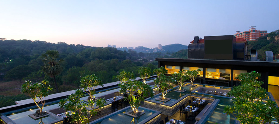 SKYY – Ramada Powai’s signature SKYY Restrolounge & Bar is one of the original rooftop dining spaces in Mumbai. The ambiance here is remarkable with its lush greenery, views of the surrounding hills, cool breeze and open skies and starry nights. The waterbodies incorporated into the design here adds to the relaxing vibe of this venue that is great for intimate as well as large-scale celebrations.