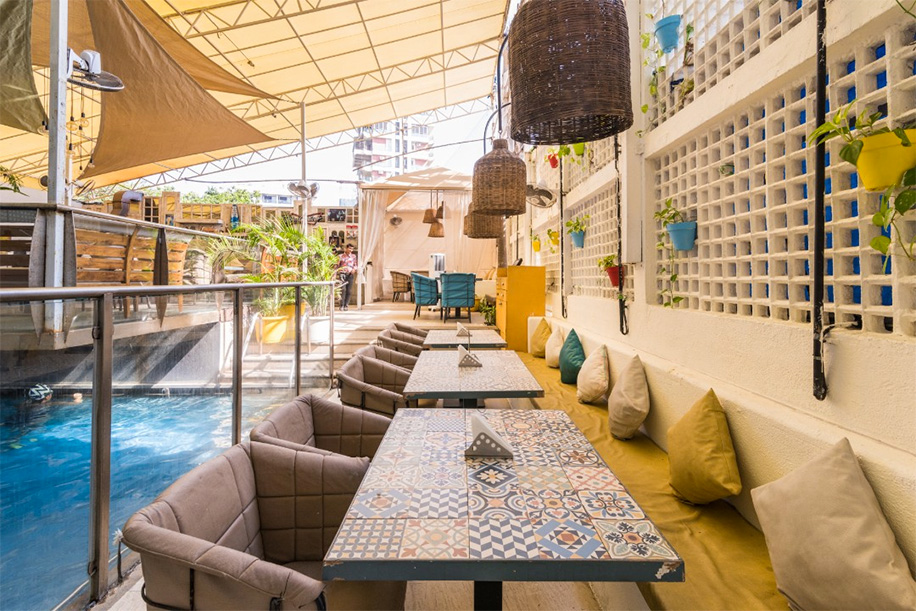 Hidden off the main street on the bustling Hill Road in Bandra West, Amanzi Sky Deck & Bar offers a picture-perfect space as well as compelling views of a pool, skyline and live sports shown on large screens. You can choose to sit indoors or outdoors if the weather is suitable. This place stocks a wide variety of drinks, so book ahead to celebrate that special occasion here with your loved ones.