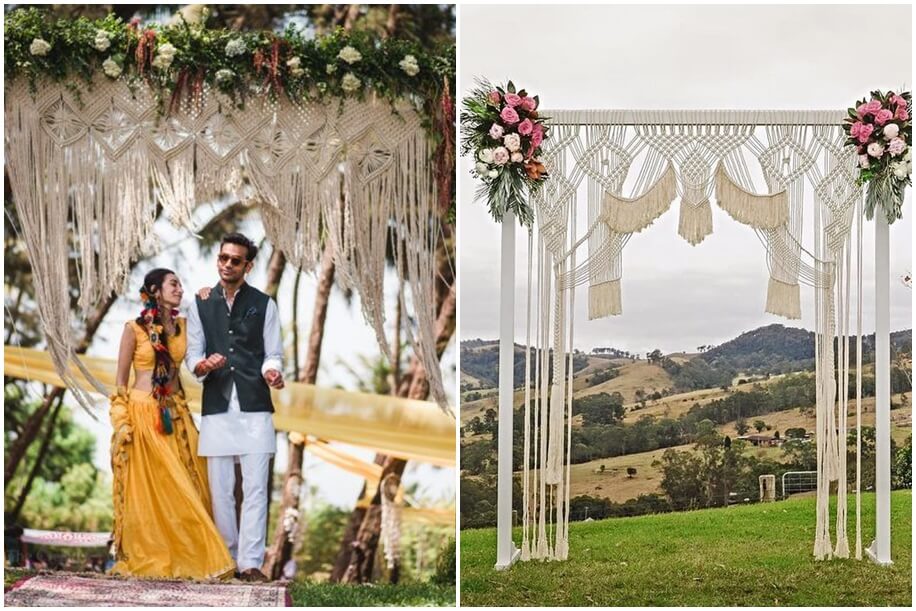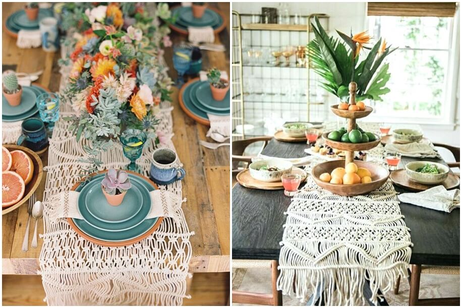 With its roots originating in ancient cultures and civilizations, the knotted craft of macramé brings the best of art and history to the table. Allow your guests to walk into your celebrations through a macramé entryway. You can also hang potted plants in creatively knotted slings for that earthy touch, or use macramé table runners for your outdoor brunch – the options are all aesthetic and elegant.