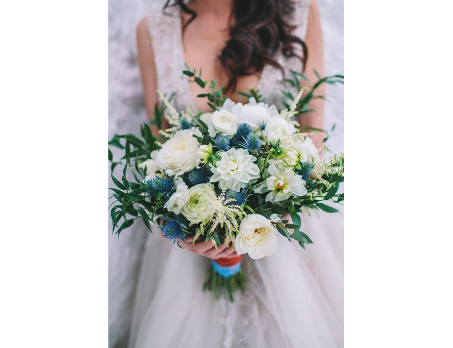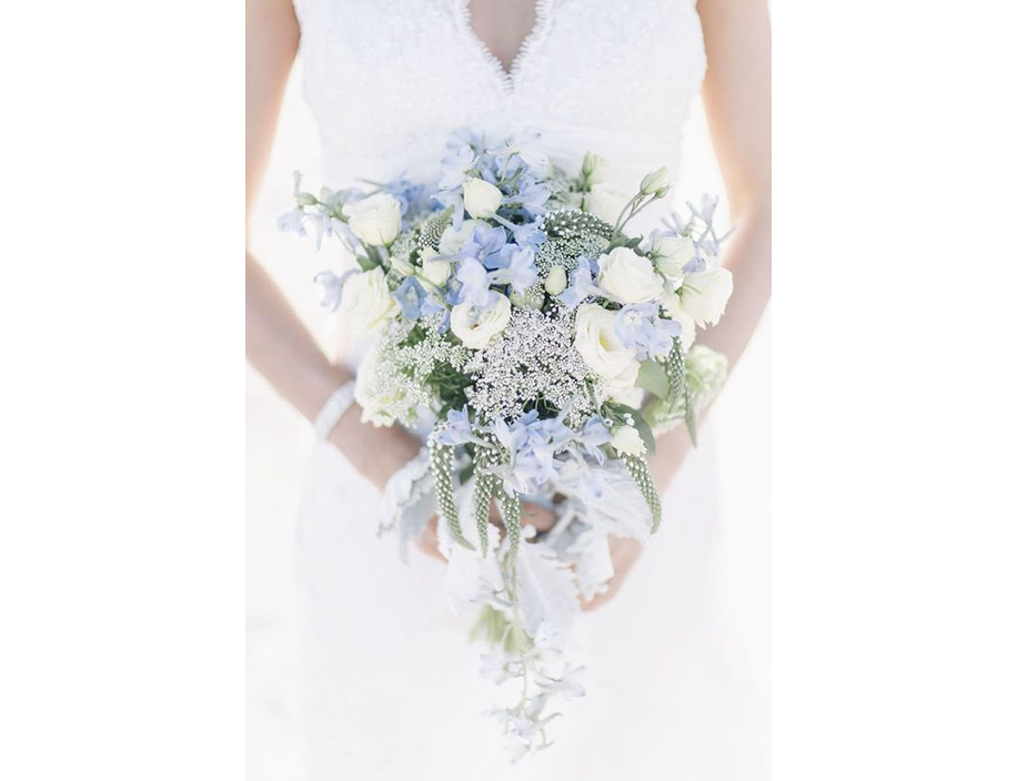 Pale blue goes so beautifully with white, and these delicate additions to a stunning bridal bouquet add just the right amount of fresh appeal.