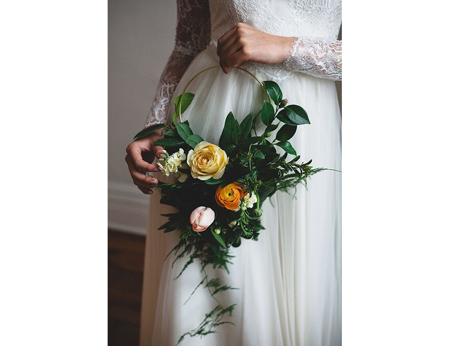 Why reach for the moon when you can hold a dainty floral crescent in your hands? We love how avante garde and edgy this bridal bouquet looks.