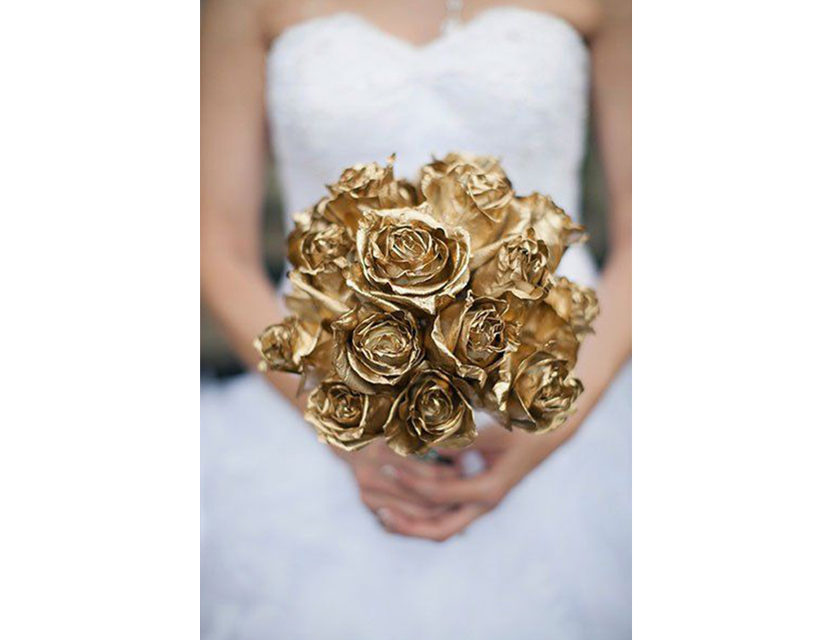 Indian brides and their love for gold go hand in hand. If you too are looking for ways to incorporate a little glitter in your white wedding attire, then this bouquet of golden roses is definitely for you!