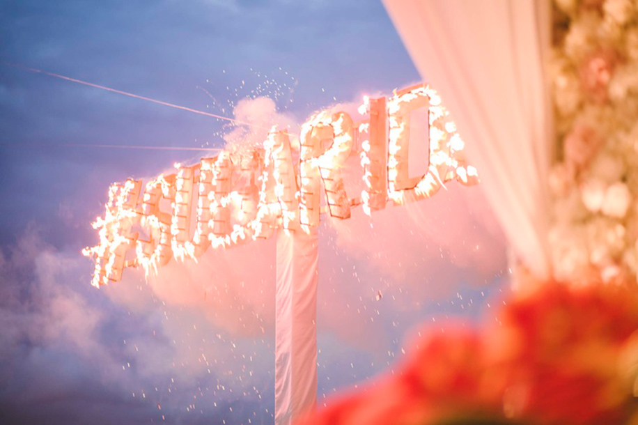 Planned by Krayonz Entertainment, this firecracker lit hashtag display takes wedding revelries to another level.