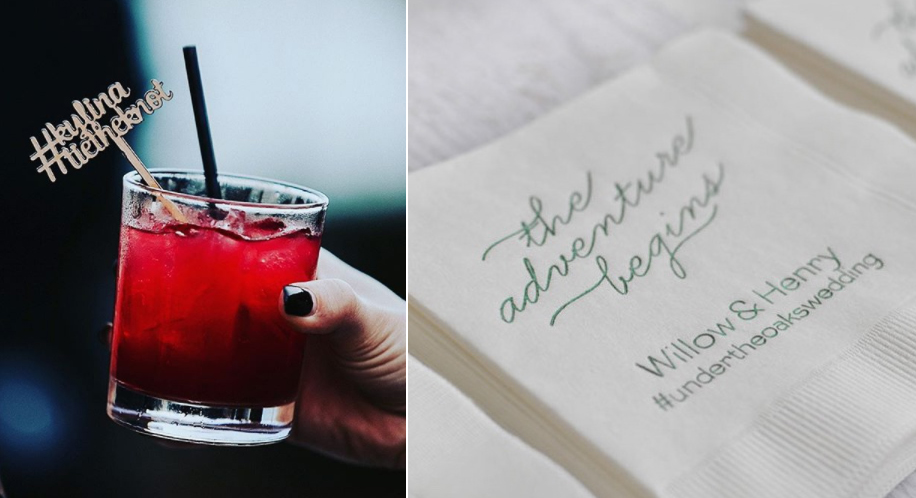 Customized stirrers like this, as well as other cutlery are a great way to include your hashtag into the little details of the day.