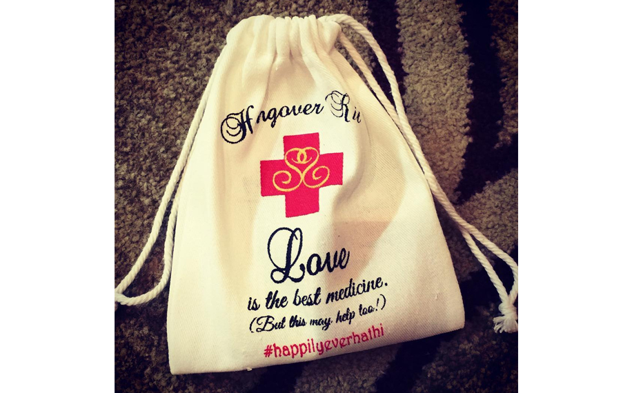 Printed with the wedding hashtag and an adorable message, these thoughtful hangover kits conceptualized by Pink Palki are sure to have made a mark on their guests.