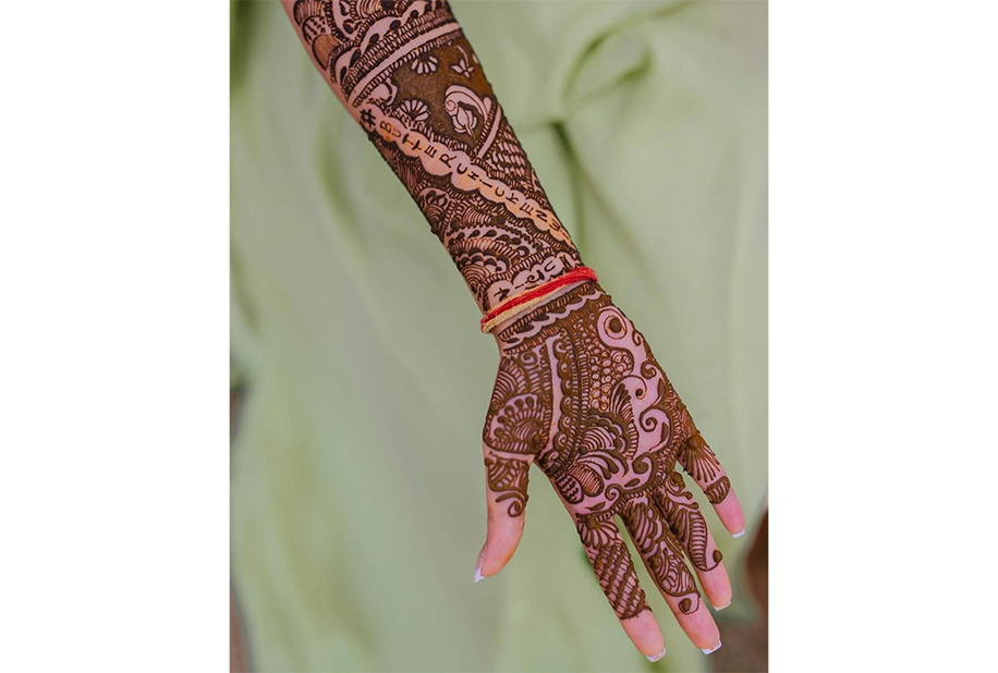 Incorporate your hashtag into your Mehndi design for a subtle tribute to your love.