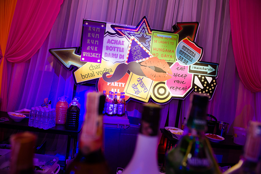 Consider using a clash of colors to make your photo booth. Curate a few patterns and layer them. This works well across all themes but you can create an Indian kitsch vibe that will never go out of style.
