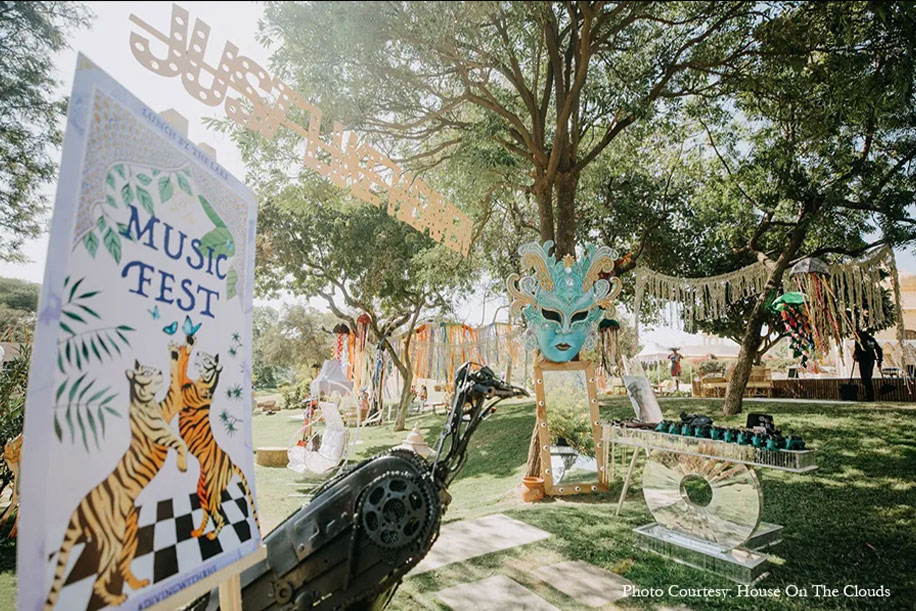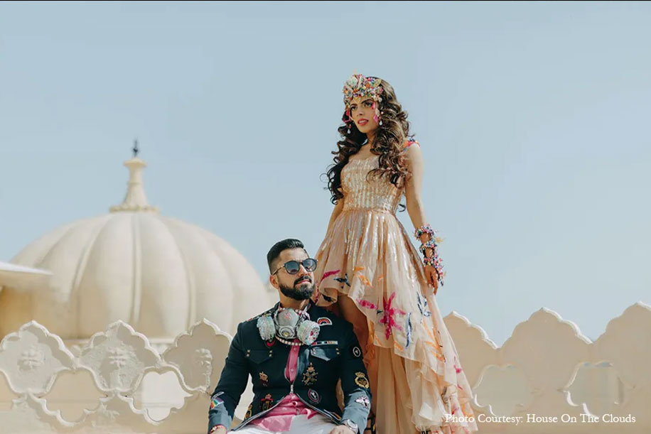 1. Bianca and Dev skipped the sangeet and hosted a music festival called ‘Lucid Dreams’. Planned by WeddingSutra Favorite – Morani and Soorma, the sunset patio of Suryagarh was transformed with trippy decor including a giant acid butterfly that formed the DJ backdrop!
