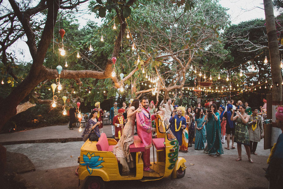 4. Tarek and Narina’s goa wedding was Coachella meets Kitsch! Set along the Arabian Sea, Nilayan Hermitage provided the backdrop for this colorful, joyous 3-day wedding inspired by India’s rich wedding traditions. Bollywood films, a Sgt. Pepper’s Lonely Hearts Club theme, a custom painted tuk-tuk, vibrant turbans, and delicious food were just a handful of highlights guests enjoyed.