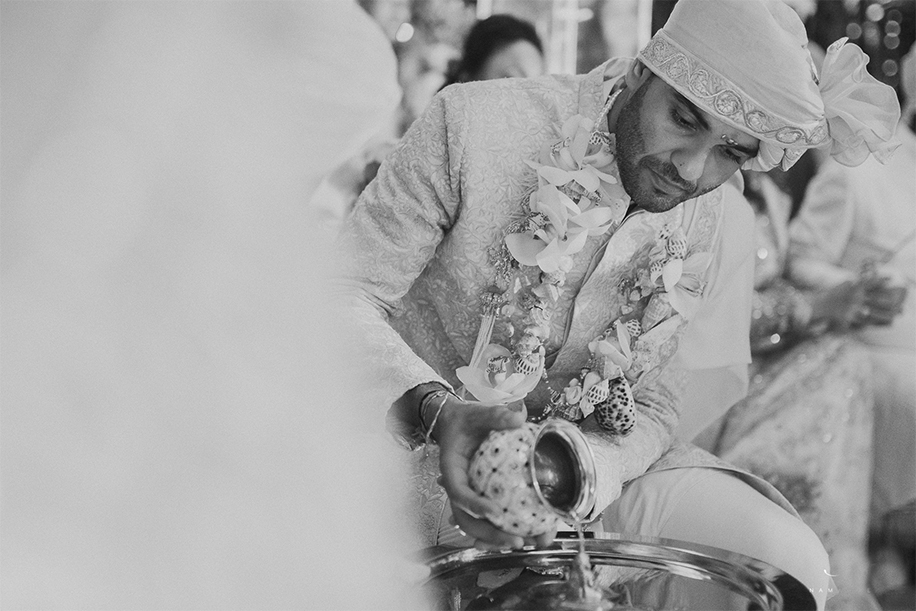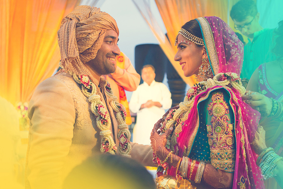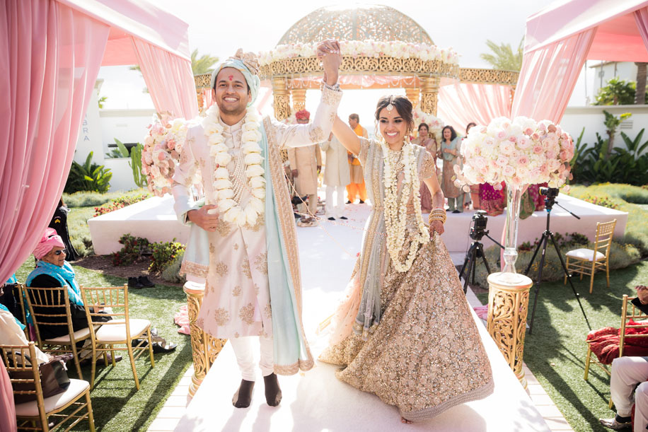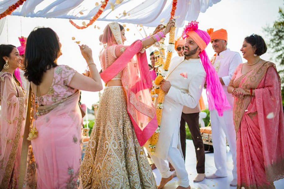 Benaisha and Yash’s pretty garlands featured a mix of pink roses and baby’s breath blooms which matched their ensembles perfectly.