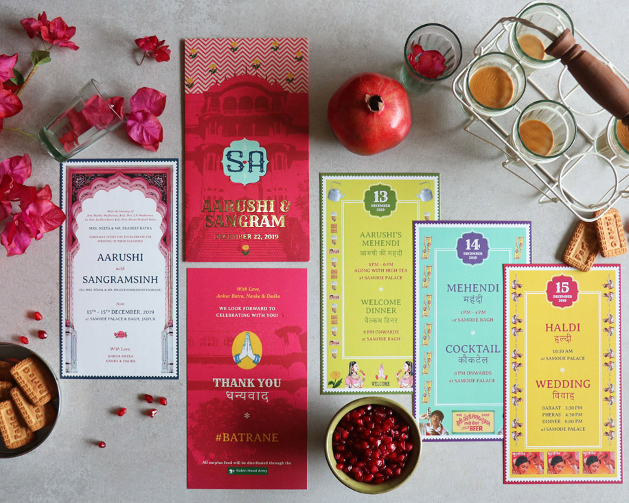 This utterly unique concept by Hieco by Simran Monga is sure to take you on a walk down memory lane. Influenced by retro Indian aesthetics and local imagery, every card is accompanied by beautiful images that represent a particular ceremony.