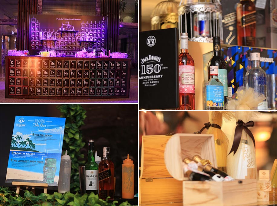 “There are personalized bar setups and cocktail menus that we cater to at weddings. Molecular cocktails are high in demand, and the candy floss martini is one of our favorites. Single malt is also getting popular in the market especially for luxury weddings. We just recently did a wedding where we had an Oriental theme bar setup. Cocktails were created with Thai chilies, basil leaves, and dim sum flavors. Molecular cocktails and vodka-infused watermelon /popcorn /candy floss with foam fume and dry ice are particularly popular with guests. Molecular mixology is what’s trending currently. Everyone wants something different, and therefore we customize every theme as per the client’s requirement. Bar décor has become very important now, and there is a lot of attention to detail put into everything from the straws to the glassware. A lot of clients also ask for custom-made and engraved bottles that can be used as giveaways for guests or as displays to adorn the bar.”