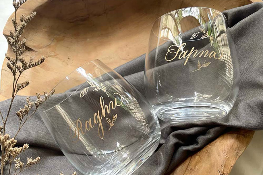 Memorable keepsakes that remind your girl gang of the fun times they had together, can be the simplest of things. However, you can amp up the personalisation factor of the gifts with custom engraving! Art By Rachna is an exclusive Calligraphy, Personalisation, and Design studio based in Mumbai known for offering on-site custom engraving and personalization services. Rachna ensures that your momentous day becomes an unforgettable experience for your cherished guests with personalised wedding favours that will keep reminding them of your big day.
