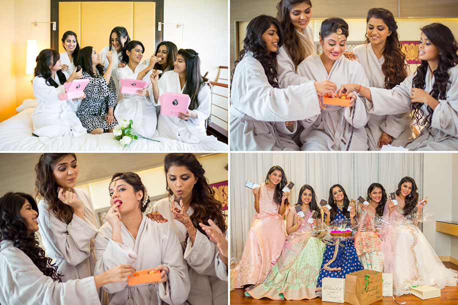 Say a ‘sweet thank you’ to your bridesmaids with something delectable like cupcakes from one of the many top-grade bakery outlets. We recommend fancy desserts from La Folie, Le 15 Patisserie or Fantasie Chocolates. Personalized cakes according to your wedding theme or go unique with flavors such like salted caramel, chocolate truffle, carrot and walnut, You can also get personalized packaging for those pretty macaron boxes and chocolate platters.