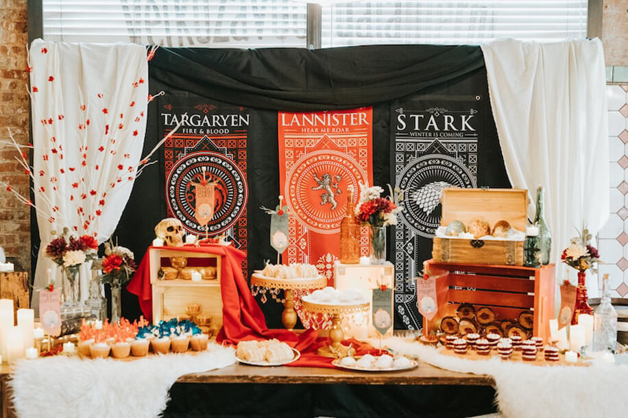 Jon Snow may know nothing, but we know one thing for sure – everyone loves cake! Add your personal touches to the theme based cake. For instance, order mini fondant versions of you and your partner as the cake-top or with a replica of the iconic Iron Throne itself.